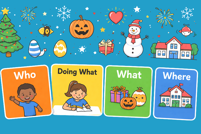 Our Colourful Semantics Calendar Events Resources provide engaging, ready-to-use activities that help children develop speech, language and sentence building skills through familiar seasonal and calendar-based topics. Using the evidence-based Colourful Semantics approach, these resources use colour-coded prompts such as Who, What Doing, What and Where to support vocabulary, grammar and expressive language development. Activities linked to events such as Christmas, summer holidays and other seasonal themes help pupils connect language learning with real-world experiences, making them ideal for classroom teaching, small-group intervention and SEND support.